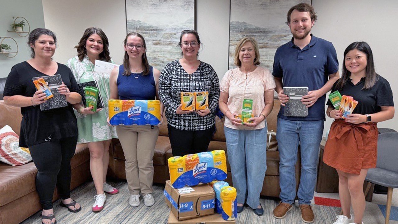 Shreveport volunteers delivered a $1,500 HCI donation and school supplies to the Gingerbread House, a child advocacy center that supports abused children and their families.